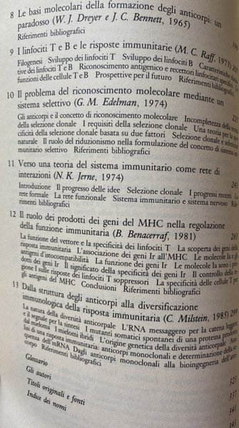 Autore: AA.VV. (Autori Vari): Baruj Benacerraf, Joe Claude Bennett, Frank Mcfarlane Burnet, William J. Dreyer, Gerald Maurice Edelman, Paul Ehrlich, Niels Kaj Jerne, Karl Landsteiner, Joshua Lederberg, Elie (Ilya) Metchnikoff, Cesar Milstein, Linus Carl Pauling, Martin Charles Raff.