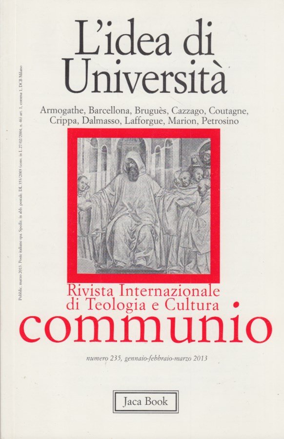 In-8 (cm 23x15), pp. 94, brossura edit. ill. Rivista Internazionale di Teologia e Cultura Communio numero 235, gennaio-febbraio-marzo 2013. Pieghine all'angolo del piatto posteriore. Molto Buono