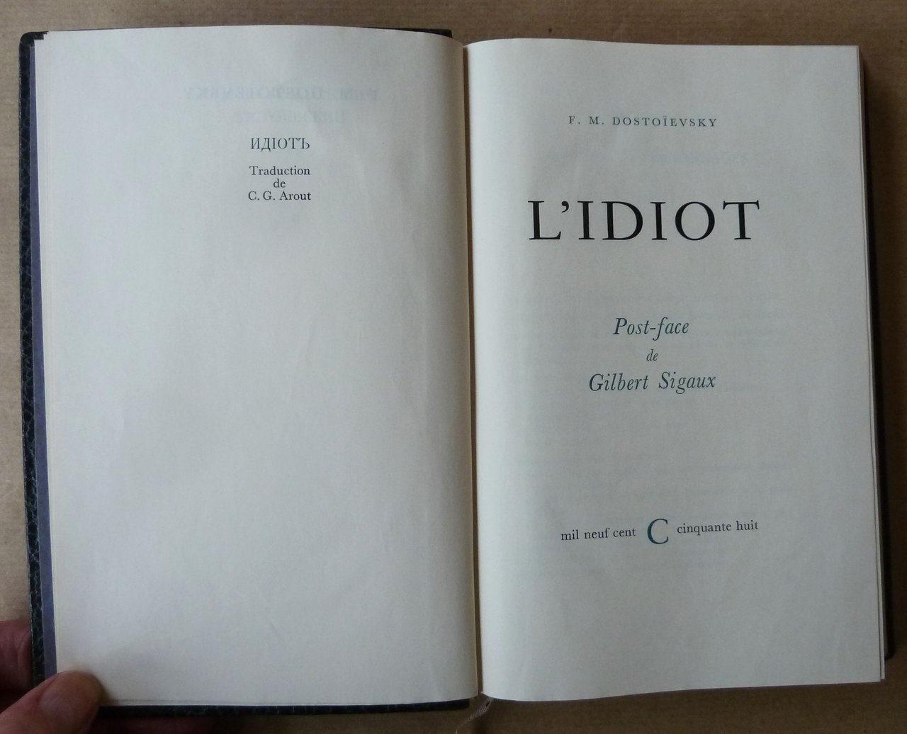 L'Idiot. Traduction de C. G. Arout. Post-Face d'Albert Sigaux.