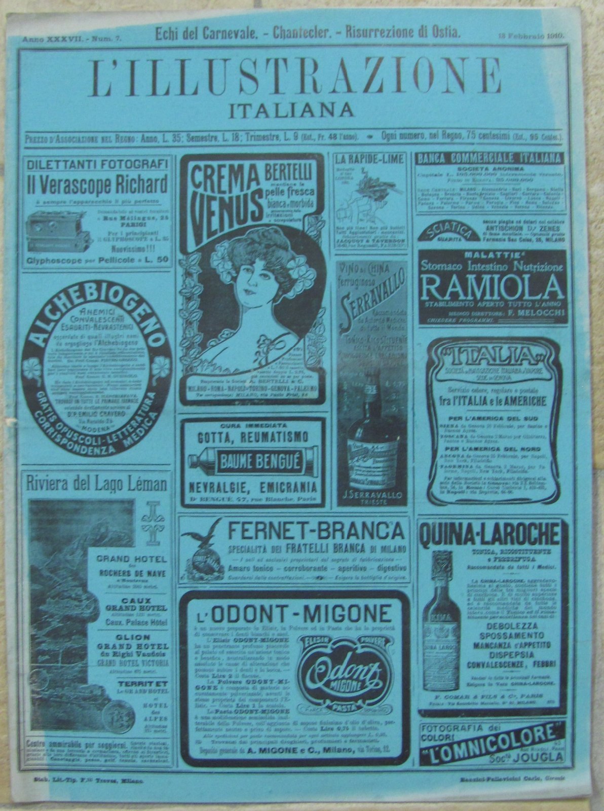 L'ILLUSTRAZIONE ITALIANA 13 FEBBRAIO 1910 ARGOMENTI ECHI DI CARNEVALE- CHANTECLER- RISURREZIONE DI OSTIA L1672 COPERTINA IN CARTA AZZURRA SBIADITA AI MARGINI, DA PAG 150 A PAG.172