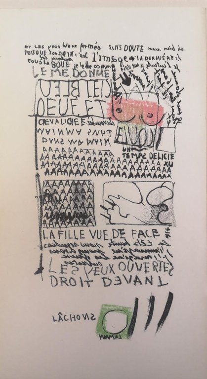 In-8 gr. (mm. 246x145), custodia editoriale cartonata (fogli non legati), cofanetto in piena tela, pp. 12 (1), con quattro litografie a colori realizzate da Gastone Novelli e tirate da Roberto Bulla. Edizione in 50 esemplari (offriamo il n. 19).Esemplare in ottimo stato di conservazione.