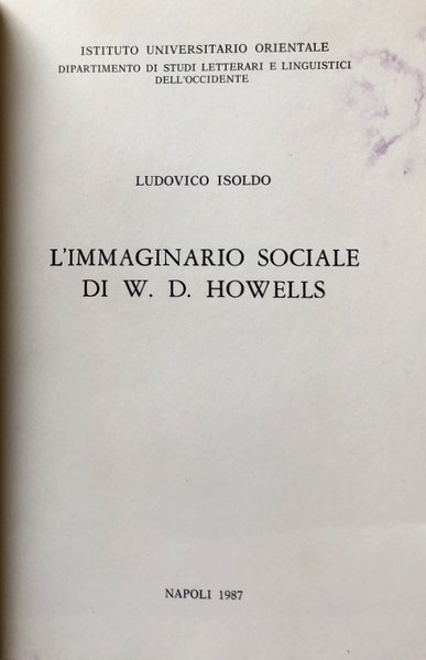 L'IMMAGINARIO SOCIALE DI W. D. HOWELLS | Libros antiguos y modernos | Ludovico Isoldo