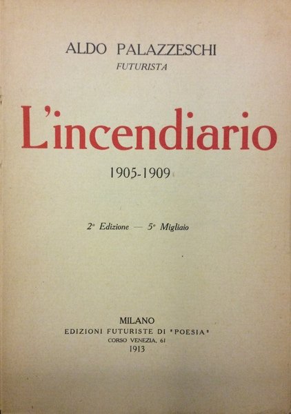 L'INCENDIARIO. 1905-1909. - Seconda edizione - 5° migliaio..