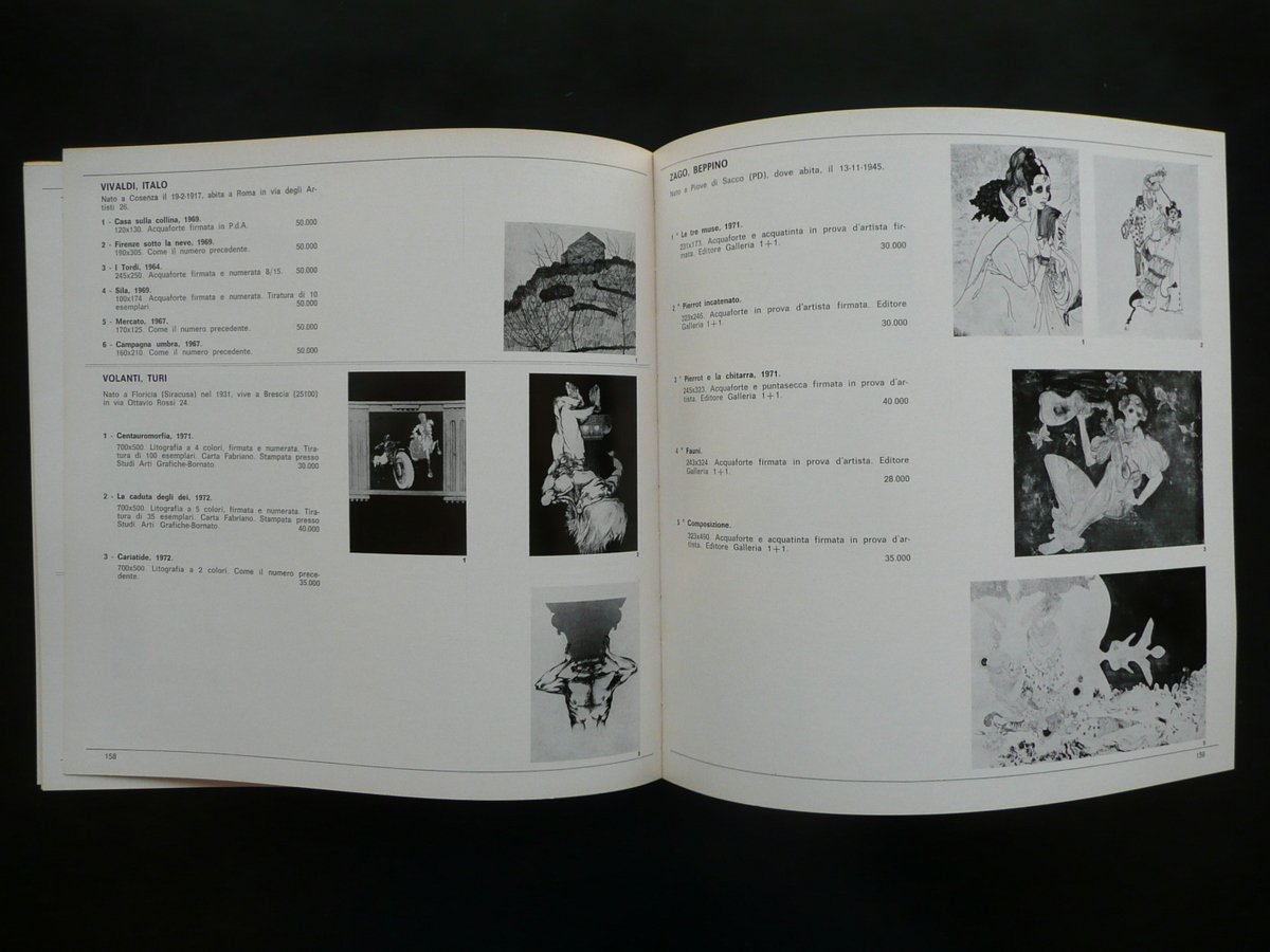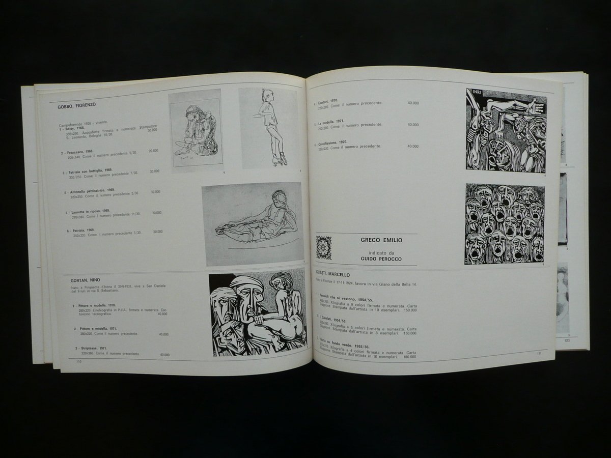 Catalogo, IV Mostra - Mercato dell'incisione antica e contemporanea - L'Incisione in Italia oggi Padova - Piazza Insurrezione, 14/I 20 maggio - 20 giugno Galleria 1+1, Padova 1972, cm 23x23, pp. 166 con numerosissime ill. in b/n n. t.; brossura ed. ill. a colori. Condizioni di conservazione Esemplare in buone condizioni con tracce d'uso; br. post. con alcune piccole lievi bruniture; taglio sup. con minime tracce di sporco; dorso con un segno di utilizzo. Interni pressoché ottimi. Con numerosissime illustrazioni in bianco e nero nel testo. SETT88.L7985 N