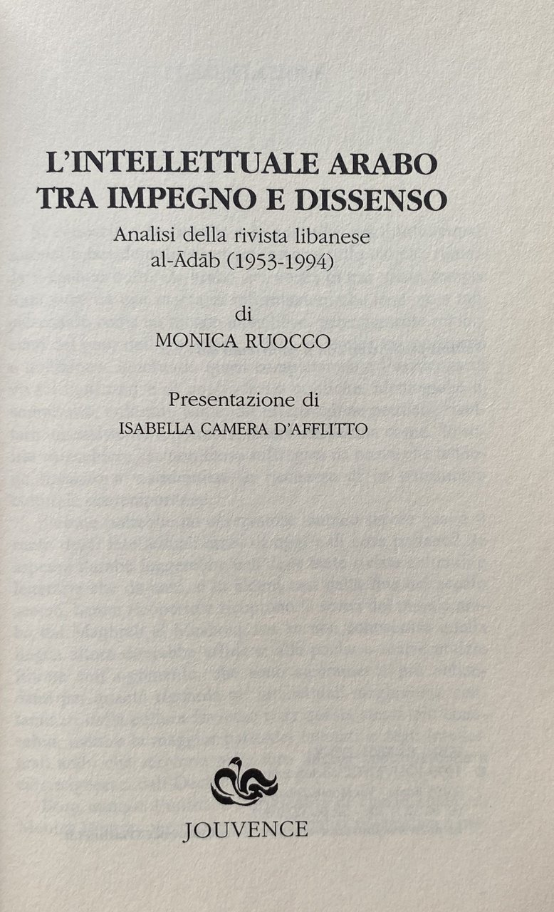 L'INTELLETTUALE ARABO TRA IMPEGNO E DISSENSO: ANALISI DELLA RIVISTA LIBANESE AL-ADAB (1953-1994) | Libros antiguos y modernos | Monica Ruocco, Isabella Camera d'Afflitto