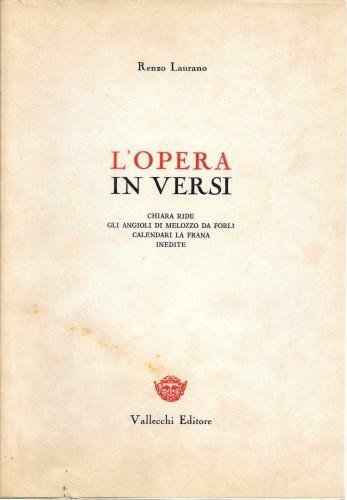 in 8° pp. XVII, 187, 2; bross. edit. muta con sovracop. in carta pergamena con tit. in nero e rosso; a cura di Graziella Corsinovi; lievi aloni alla sovracop. 182/23
