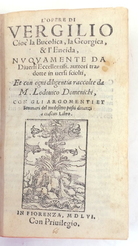 L'Opere di Vergilio cioè la Bucolica, la Georgica, et l'Eneida, nuovamente da diversi eccellentiss. autori tradotte in versi sciolti, et con ogni diligentia raccolte da M. Lodovico Domenichi.