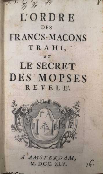 L'ORDRE DES FRANCS-MACONS TRAHI ET LE SECRET DES MOPSES REVELE'.