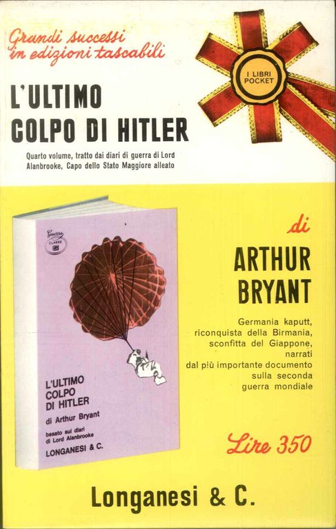Milano, Longanesi, 1966. In-16°, da p. 309 a p. 520. Bross. edit. figurata.Quarto volume tratto dai diari di guerra di Lord Alanbrooke, Capo dello Stato Maggiore allleato. Ottime condizioni.