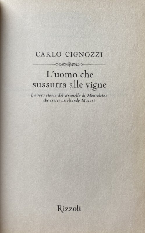 L'UOMO CHE SUSSURRA ALLE VIGNE. LA VERA STORIA DEL BRUNELLO DI MONTALCINO CHE CRESCE ASCOLTANDO MOZART | Libros antiguos y modernos | Carlo Cignozzi