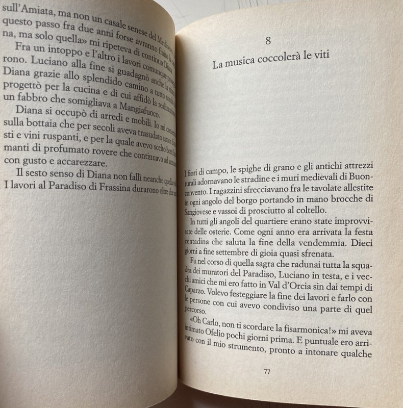 La Val d'Orcia lo aveva conquistato già trent'anni prima, finendo per trasformare la sua vita. Ma c'è ancora qualcosa di nuovo da realizzare al Paradiso di Frassina, il podere appena acquistato a Montalcino. Ammaliato dagli studi sulla vita segreta delle piante e spinto dall'intuizione che la musica abbia influssi benefici sulla vegetazione, Carlo decide che le sue vigne cresceranno coccolate dalle morbide armonie di Mozart.