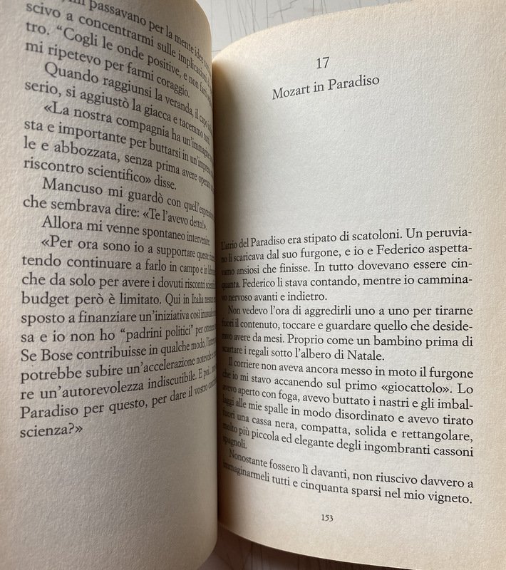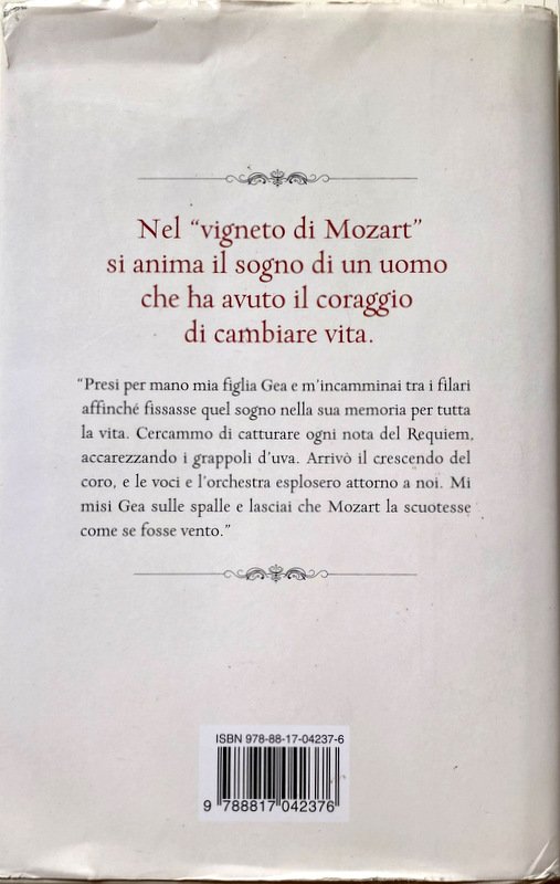 Nel "vigneto di Mozart" si anima il sogno di un uomo che ha avuto il coraggio di cambiare vita. "Presi per mano mia figlia Gea e m'incamminai tra i filari affinché fissasse quel sogno nella sua memoria per tutta la vita. Cercammo di catturare ogni nota del Requiem, accarezzando i grappoli d'uva. Arrivò il crescendo del coro, e le voci e l'orchestra esplosero attorno a noi. Mi misi Gea sulle spalle e lasciai che Mozart la scuotesse come se fosse vento."