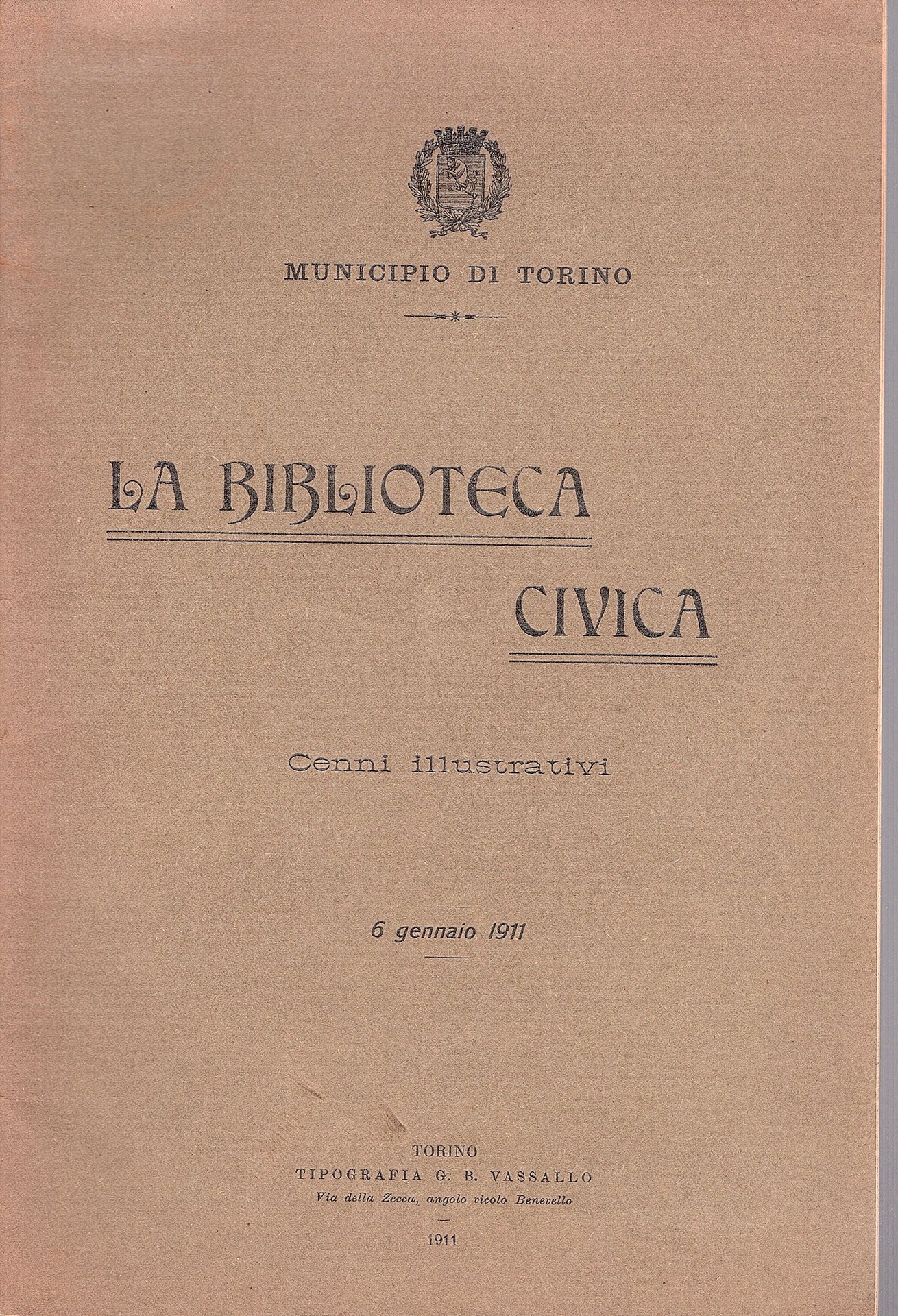 La biblioteca civica. Cenni illustrativi. 6 gennaio 1911 | Libros antiguos y modernos | Municipio Di Torino