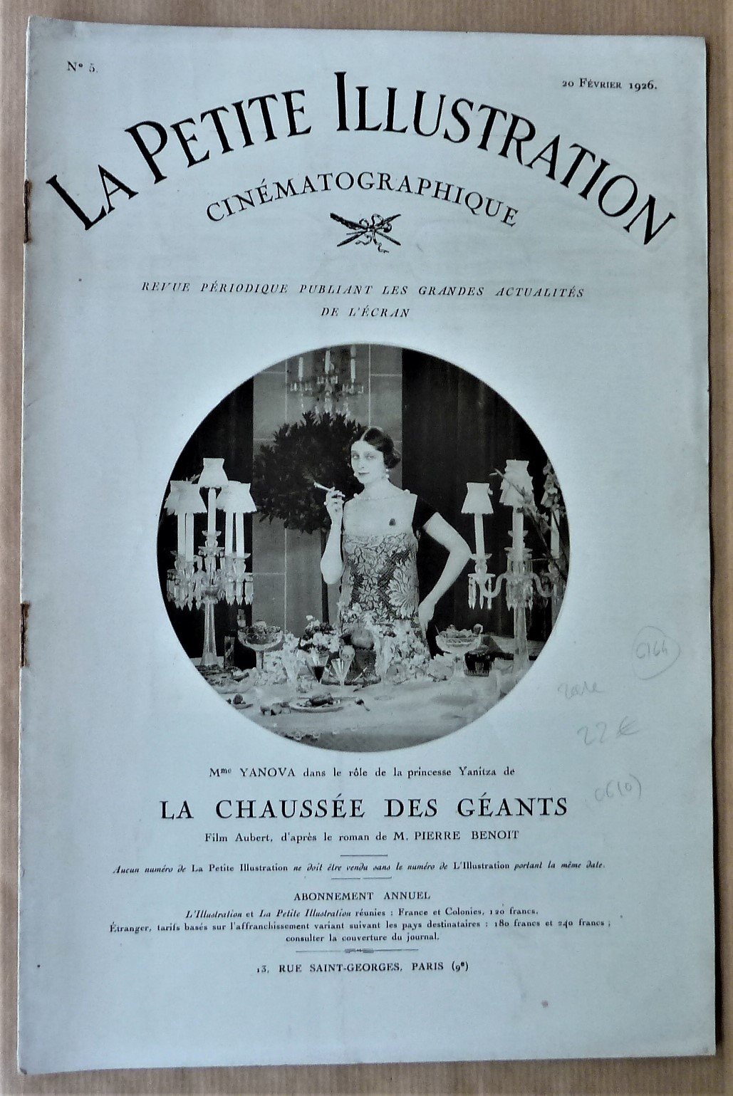 Paris, La Petite Illustration Cinématographique, 1926, N° 5. Une revue de format in 4° de 12 pp., nombreuses photographies du film en sépia. Rare, bon état.