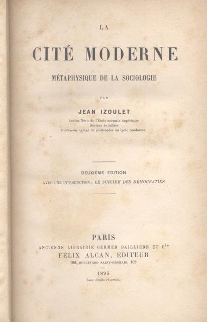 LA CITE' MODERNE. Métaphisique de la sociologie. Avec une introduction "Le suicide des démocraties".