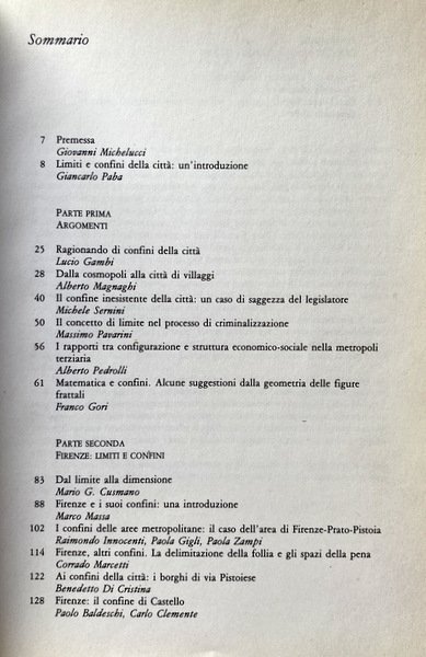 Nella prima parte del volume, il limite della città è analizzato secondo un'angolazione teorica, come problema storico, urbanistico, ambientale, amministrativo, criminologico, matematico.