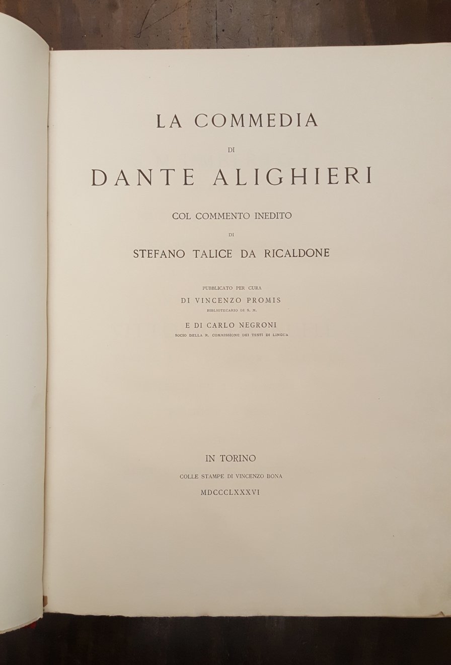 La Commedia. Col commento inedito di Stefano Talice da Ricaldone. Pubblicato per cura di Vincenzo Promis e di Carlo Negroni.