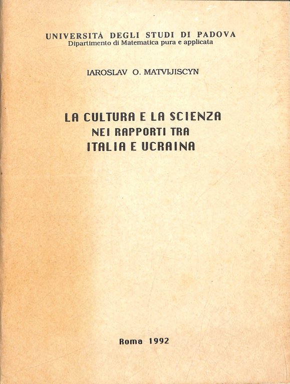 La cultura e la scienza (con particolare riguardo alla matematica) nei rapporti tra Italia e Ucraina. 21 cm, 127 p. 940 Ottimo (Fine)
