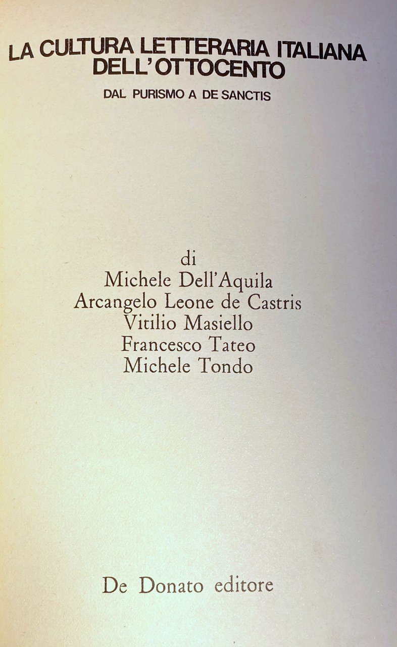 LA CULTURA LETTERARIA ITALIANA DELL'OTTOCENTO. DAL PURISMO A DE SANCTIS | Libros antiguos y modernos | Michele Dell'Aquila, Arcangelo Leone de Castris, Vitilio Masiello, Francesco Tateo, Michele Tondo