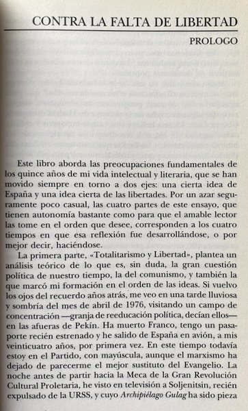 L'esperienza giornalistica dell'autore gli fornisce fonti di conoscenza abbondanti, varie e accertate, che gli hanno permesso di costruire le sue argomentazioni su ciò che considera la progressiva trasformazione, intima e non sopravvalutata, del regime democratico spagnolo in una realtà di segno totalitario, dato il monopolio politico di un unico partito, il crescente nazionalismo della Catalogna e dei Paesi Baschi, i difetti del liberalismo economico socialista e la crescente tensione contro la libertà di informazione. Sia la visione storica dei meccanismi totalitari dei vari regimi che la relazione sull'attuale situazione in Spagna attraverso un contributo alla conoscenza di queste realtà e al fondamento del deterioramento democratico. Il testo ha un orientamento democratico liberale e progressista in cui viene rilevata una visione temporalistica o secolarista di alcuni concetti o citazioni della Chiesa.