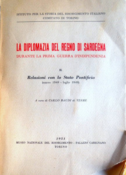 Soggetti: Storia moderna, Diplomazia, Politica estera, Relazioni internazionali, Regno di Sardegna, 1717-1861, Relazioni diplomatiche con il Regno delle Due Sicilie, 1848-1849, Fonti, Granducato di Toscana, Stato della Chiesa, Papa, Storia ,Dalla reazione ai moti carbonari alla prima guerra d'indipendenza, 1831-1849, Risorgimento, Pio IX, Questione romana, Carlo Alberto, Allocuzione, Stato sardo, Piemonte, Francia, Libri rari, Vecchi,Vintage