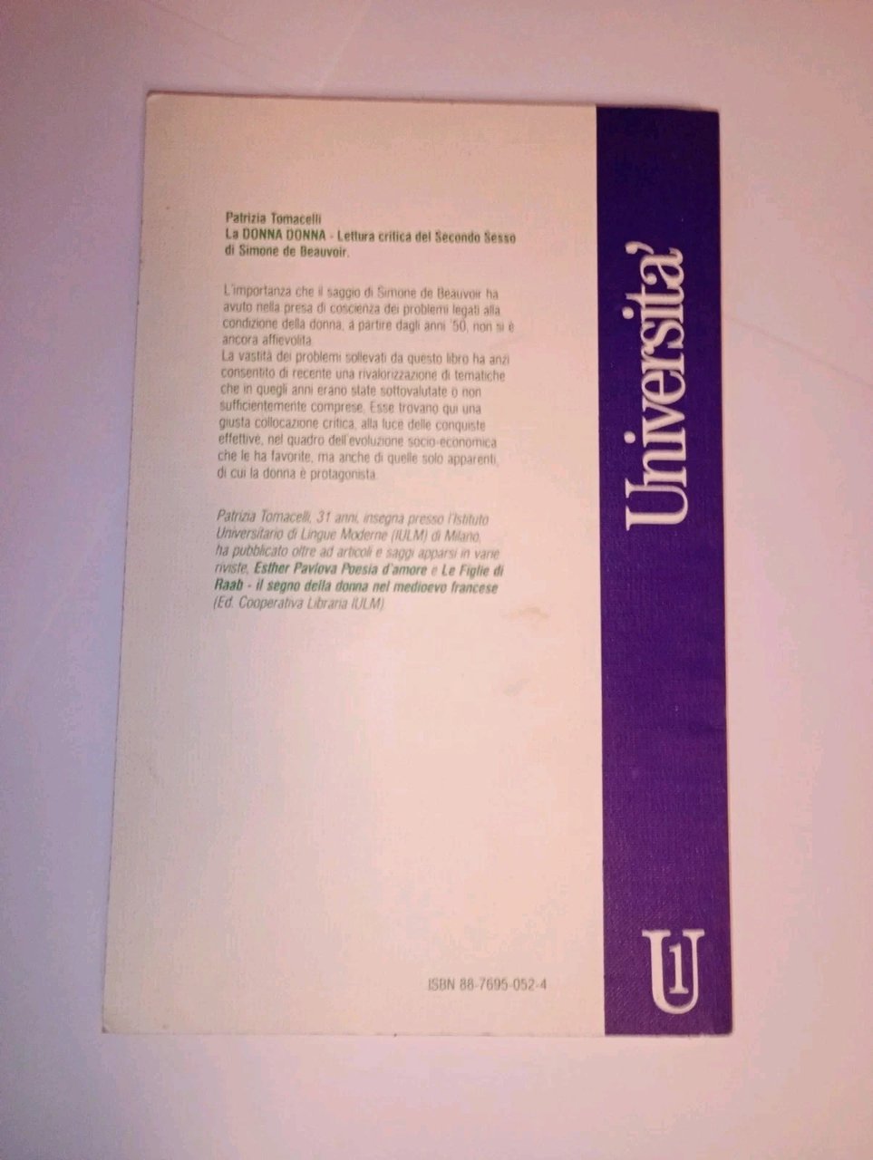 PATRIZIA TOMACELLI, la donna. lettura critica del secondo sesso di Simone De Beauvoir - cooperativa libraria IULM, 1992