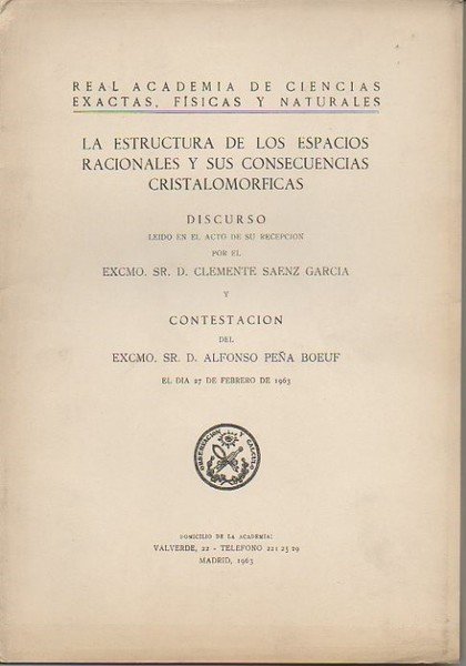 LA ESTRUCTURA DE LOS ESPACIOS RACIONALES Y SUS CONSECUENCIAS CRISTALOMORFICAS. DISCURSO LEIDO ANTE LA REAL ACADEMIA DE CIENCIAS EXACTAS, FISICAS Y NATURALES EN EL ACTO DE SU SU RECEPCION EL DIA 27 DE FEBRERO DE 1963.