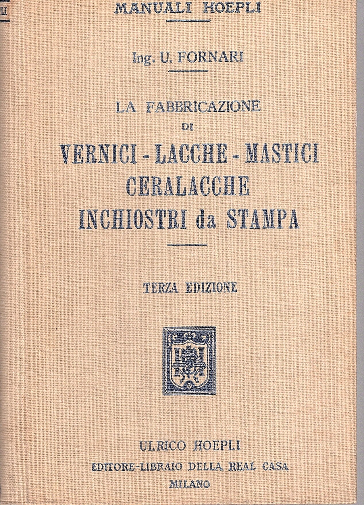 La fabbricazione di vernici, lacche, mastici, ceralacche, inchiostri da stampa. TERZA EDIZIONE riveduta ed aumentata | Libros antiguos y modernos | Fornari P.