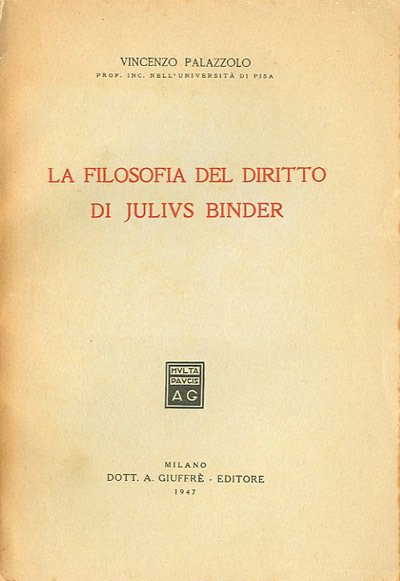 VI, 155 p. ; 25 x 17 cm. Monografia sul giurista tedesco Julius Binder (1870-1939). Professore a Rostock nel 1900, insegnò poi a Erlangen, Würzburg, Gottinga. I suoi scritti e il suo insegnamento abbracciano vasti campi. Tra le opere: "Die Correalobligationen im römischen und im heutigen Recht" (1899), "Das Problem der juristichen Persönlichkeit" (1907), "Die Plebs" (1909), "Philosophie des Rechts" (1925), "Grundlegung zur Rechtsphilosophie" (1935). Brossura editoriale, coperta in cartoncino flessibile, titolo impresso in rosso al piatto e al dorso. Qualche segno del tempo al dorso della coperta e alle pagine interne (ingiallimento) per il resto libro in buono stato. Codice libreria 4166.