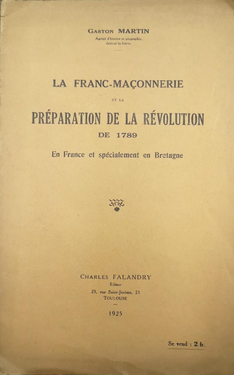LA FRANC-MAÇONNERIE ET LA PRÉPARATION DE LA RÉVOLUTION DE 1789