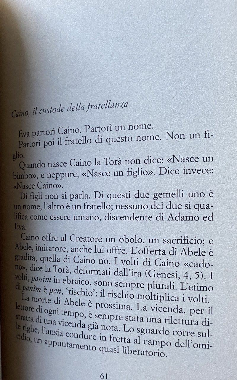 Soggetti: Ebraismo Bibbia Cultura Antico Testamento Genesi Testi biblici spiegati Sapienza ebraica Versetti Esegesi biblica Pedagogia Ragazzi Avigail Finalità Torà Critica Interpretazione Personaggi biblici Isacco Simbolismo Lezioni Ebrei Bestsellers Giudaismo Cristianesimo Caino Abele Abramo Adamo Eva Aleph Askenaziti Benedizione Cacciagione Canaan Claudicante Claudicanza Cochard Creatore Creazione Esodo Fuga Esilio Egitto Alfabeto Identità Umanità Uomo Deuteronomio Disabile Divino Donna Elohim Emèt Ermeneutica Esaù Figlio Firmamento Fratello Spiegata Giacobbe Gianni Giuseppe Hagàr Avraham Yitzchàk Haim Chassidico Moglie Incesto Israele Angelo Lettera Libro Lingua Linguaggio Luna Madre Maestro Mangiare Maurizio Midrâsh Mishna Moglie Chouchani Mosè Nahor Narrazione Parola Patriarca Popolo Pozzo Primogenito Racconto Raqia Rebecca Responsabilità Sara Settimo giorno Shabbath Sabato Storia sacra Talmud Tetragramma Tradizione Libri fuori catalogo Collezionismo Religioni comparate Spiritualità Rappresentazioni teatrali Dio Viaggio Teatro Decalogo Letteratura Rahaim Adonai Pentateuco Profeti Agiografi Mishna Ghemara Tanaim Midrash Ruth Shammah Limud Lamed Veshinantam levaneha Natura Hateva Reshit Principio Jossef Gabriele Rachele Donne Colpa Peccato Fratellanza Custode Custodia Pace Messia Mela Serpente Eden Paradiso terrestre Proibito Costola Commentari rabbinici Judaism Bible Culture Antico Testament Genesis Biblical Texts explained Jewish Wisdom Verses Biblical Exegesis Pedagogy Guys Purmity Critical Interpretation Biblical characters Isaac Symbolism Jewish Lessons Judaism Christianity Cain Abel Abraham Blessing Creator Creation Exodus Escape Egypt Hermeneutics Son Firmament Brother Explained Jacob John Joseph Chassidic Wife Incest Israel Angel Letter Book Speech Language Moon Mother Master Eating Maurice Wife Moses Narration Word Patriarch People Well Firstborn Story Responsibility Sarah Seventh day Saturday Sacred history Tetragrammaton Tradition Out of print books Collectibles Comparative religions Spirituality Theatrical performances God Journey Theater Decalogue Literature Pentateuch Prophets Hagiographers Nature Principle Gabriel Rachel Women Guilt Sin Brotherhood Guardian Custody Peace Messiah Apple Snake Earthly Paradise Forbidden Rib Rabbinic Commentaries Teologia Theology