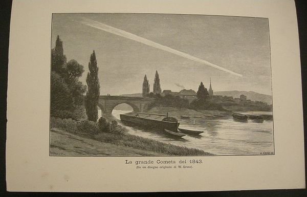 La grande Cometa del 1843 (da un disegno originale di W. Kranz). Tratto da "L'universo stellato. Trattato di astronomia popolare" del dott. M. Guglielmo Meyer.