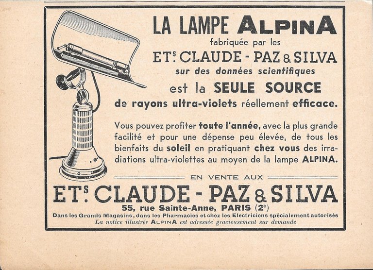 La Lampe Alpina, et.s Claude-Paz & Silva - Advertising 1935