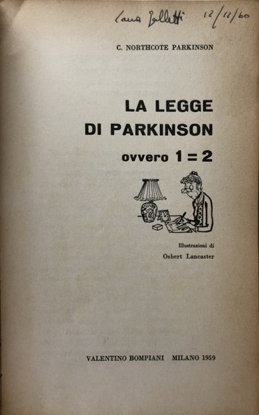 LA LEGGE DI PARKINSON OVVERO 1=2. LA SATIRA GENIALE AMENA E ILLUMINANTE DELLE ASSURDITÀ NEL MONDO MODERNO DEGLI AFFARI E DELLA BUROCRAZIA | Libros antiguos y modernos | Cyril Northcote Parkinson