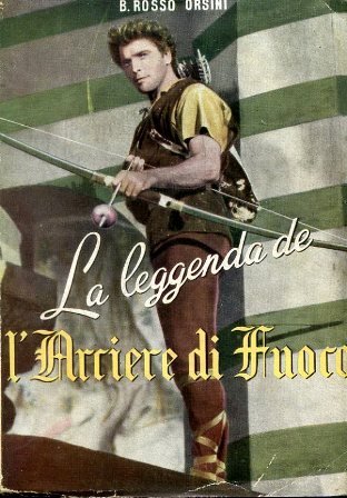 In-8°, pp. 120, (4), brossura editoriale illustrata con un fotogramma a colori rappresentante Burt Lancaster nelle vesti dell'Arciere di Fuoco'. Illustrazioni fotografiche in b.n. f.t. tratte da fotogrammi della pellicola. Timbri di estinta biblioteca parrocchiale. Prima e unica edizione, molto poco comune, di questo romanzo ispirato al classico film d'avventura di Jacques Tourneur 'La leggenda dell'Arciere di fuoco' ('The Flame and the Arrow', 1950), interpretato da Burt Lancaster e Virginia Mayo, ambientato curiosamente a Bergamo, sullo sfondo di una pittoresca Lombardia medievale ricostruita mirabilmente ad Hollywood. Bibliografia Nazionale - 1956, 15509.<br>