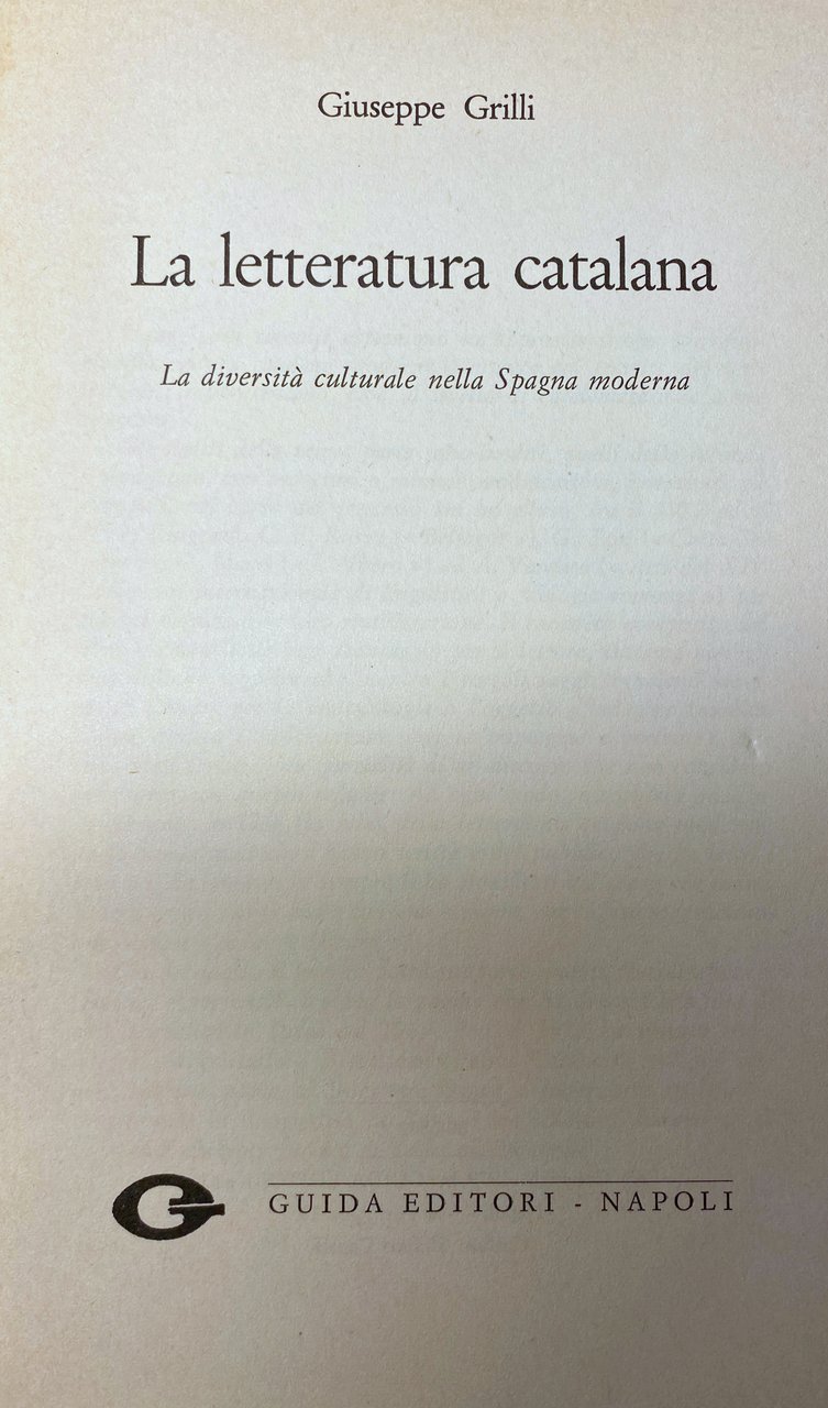 LA LETTERATURA CATALANA. LA DIVERSITÀ CULTURALE NELLA SPAGNA MODERNA | Libros antiguos y modernos | Giuseppe Grilli