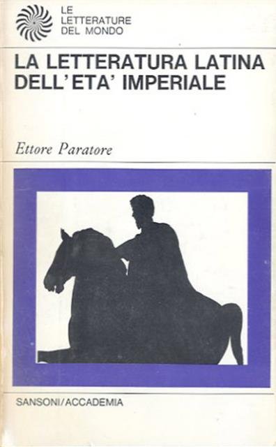 Nuova edizione aggiornata. 586 p. : 20 x 12 cm. Le letterature del mondo. In questo volume l'Autore, nella sua feconda e multiforme attività, ha affermato un tipo di critica che ha conciliato in forma sintetica le esigenze della filologia, della storia e dell'analisi letteraria, mirando a fornire una visione integrale della civiltà latina al fine di sostenere e valutare adeguatamente i fermenti per cui essa costituisce ancora uno dei pilastri della cultura e delle civiltà occidentali odierne. Per questo, rivendicando l'originalità della letteratura latina, Paratore ha cercato di individuare le figure e le correnti più vicine alla moderna sensibilità e ha indirizzato la sua attività particolare verso la ricerca degli influssi più profondi della cultura romana sulle letterature moderne. Il volume fa parte di: «Le letterature del mondo», enciclopedia universale delle letterature diretta da Riccardo Bacchelli, Giovanni Macchia e Antonio Viscardi. Brossura editoriale, coperta in cartoncino flessibile plastificato opaco illustrato a colori. Nel front. firma ms. a penna di appartenenza, per il resto volume in buone condizioni. Codice libreria 2243.