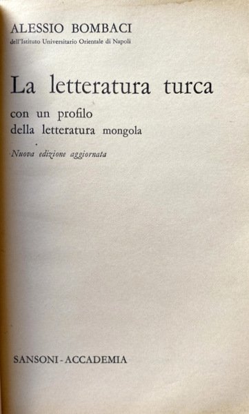 LA LETTERATURA TURCA. CON UN PROFILO DELLA LETTERATURA MONGOLA | Libros antiguos y modernos | Alessio Bombaci