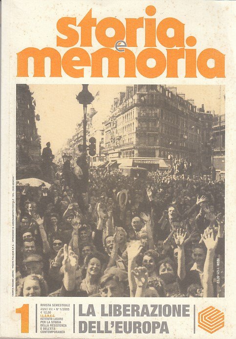 In-8 (Cm 23,5 x 16,5), pp. 119, brossura editoriale illustrata. Numero 1 della rivista Storia e memoria, semestrale anno XIV 1/2005 dell'istituto ligure per la storia della resistenza e dell'età contemporanea. OTTIMO - Raimondo Ricci, Anniversario della Liberazione: dall'Europa all'Italia, pp.7-10 - EUROPA LIBERATA - Olivier Wieviorka, Insurrezione, rivoluzione o liberazione? Parigi, agosto 1944, pp.11-21 - Steffen Prauser, La ?liberazione? di Berlino e la memoria della fine della seconda guerra mondiale, pp. 23-32 - Damijan Gu?tin, Nevenka Troha, La liberazione di Belgrado. La Jugoslavia negli anni 1944-1945, pp.33-43 - M. Elisabetta Tonizzi, Insurrezione e liberazione di Genova: 23-26 aprile 1945, pp.45-55 - Antonio Gibel - La classe lavoratrice genovese nella Resistenza, pp.57-64 - Marcello Flores, Cultura e pratica dei diritti tra Nazioni Unite e guerra fredda, pp.65-72 - Francesca Alberico, Un?occasione di confronto. Il fascismo tra movimento e regime: ricerche in corso, pp.73-86 - Stefano Verdino, Memoria di una testimone: l'opera di Liana Millu, pp.87-95 - Alan McCully, Insegnare storia in una società divisa. Il caso dell'Irlanda del Nord, pp.97-105 - Giovanni Battista Varnier, Paolo Emilio Taviani: una lezione di metodo, pp. 107-112 - Work in progress: ordinamento e informatizzazione dell'Archivio Ilsrec, pp.113-114 - Filippo Focardi, La guerra della memoria. La Resistenza nel dibattito politico italiano dal 1945 a oggi (Guido Levi), pp.115-119