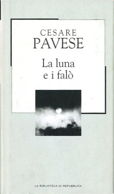 158 p. ; 21 x 12 cm. La Biblioteca di Repubblica. Novecento, 7. Pubblicato nell'aprile del 1950 e considerato dalla critica il libro più bello di Pavese, "La luna e i falò" è il suo ultimo romanzo. Il protagonista, Anguilla, all'indomani della Liberazione torna al suo paese delle Langhe dopo molti anni trascorsi in America e, in compagnia dell'amico Nuto, ripercorre i luoghi dell'infanzia e dell'adolescenza in un viaggio nel tempo alla ricerca di antiche e sofferte radici. Storia semplice e lirica insieme, "La luna e i falò" recupera i temi civili della guerra partigiana, la cospirazione antifascista, la lotta di liberazione, e li lega a problematiche private, l'amicizia, la sensualità, la morte, in un intreccio drammatico che conferma la totale inappartenenza dell'individuo rispetto al mondo. . Legatura editoriale, coperta in cartone rigido telato di colore azzurro, con impresso il titolo in nero al dorso, muto al piatto. Sovraccoperta di colore verde chiaro, illustrata a colori. Codice libreria 3594.
