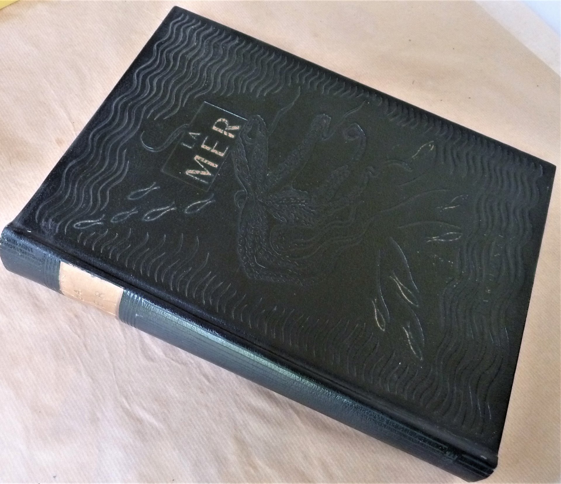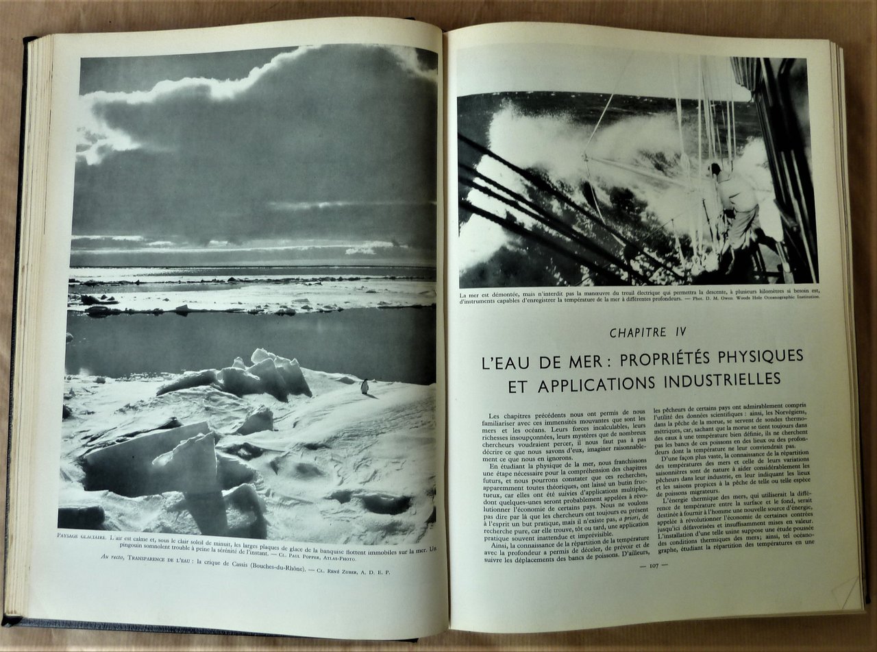 Un fort volume de format grand in 8° de 504 pp.; 16 hors-textes en couleurs et 870 illustrations la plupart photographiques en noir. Reliure en plein cuir vert ; titres et décors estampées. Parfait état mais les ors de la couverture sont passés. Voir les photos. Volume lourd. Le Commandant Cousteau fut un des collaborateurs de cete encyclopédie.