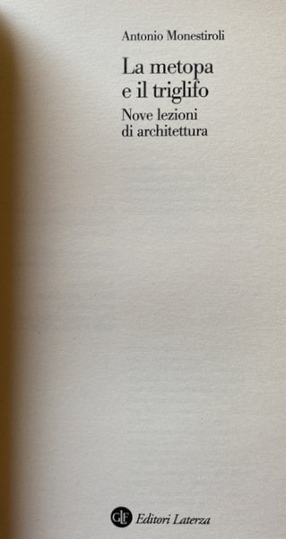 LA METOPA E IL TRIGLIFO. NOVE LEZIONI DI ARCHITETTURA