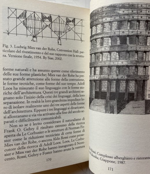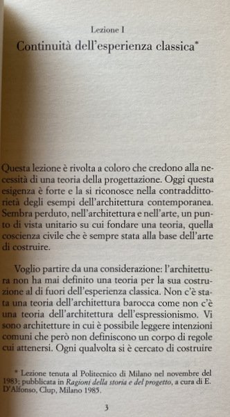 Soggetti: Architettura, Lezioni universitarie, Storia, Urbanistica, Progettazione, Scienze delle costruzioni, Stili architettonici, Composizione Architettonica, Esperienza classica, Norme, Città, Edilizia, Costruzione, Linguaggio, Vitruvio, Scienza, Pratica, Teoria, Principi, Forma, Destinazione, Identità, Perfezione, Estetica, Le Corbusier, Fine, Razionalità, Guide, Manuali, Volumi, Adolf Loos, Proporzioni, Tecniche, Prospettiva, Schelling, Lukacs, Filosofia, Spazio, Significato, Metafora, Atto costruttivo, Mies Van Der Rohe, Cultura, Appartenenza, Valore duraturo, Abitare, Modernità, Tecnologia, Opere, Decoro, Tempo, Funzione, Paesaggio, Natura, Casa bassa, Casa alta, Aula, Suolo, Tetto, Recinto, Edifici pubblici, Collettività, Relazioni, Ottocento, Sitte, Howard, Stubben, Luoghi urbani, Spazio urbano, Novecento, Isolato, Unità residenziale, Città policentrica, Espansione, Periferie, Residenziale, Privatizzazione, Megalopoli, Metropoli, Globalizzazione, Alienazione, Aggregazione, Servizi, Centri storici, Estraniamento, Commercio, Consumismo, Vita collettiva, Infrastrutture, Verde, Trasporti, Ecologia, Piazza, Agorà, Acropoli, Metopa, Triglifo, Capanne, Auguste Choisy, Quatremere de Quincy, Decorazione ornamentale, Rinascimento, Mura, Cattedrali, Colonne-trabeazione-arco, Illuminismo, Schinkel, Loos, Cemento armato, Stile, Idealizzazione, Asilo a Segrate (1972), Teatro di Udine (1974), Forma disunita, Accademismo classicista, Forme plastiche, Naturalismo, Frank Gehry, Norman Foster, Riduzione tecnicista, Ricerca, Hegel, Estetica, Arte, Leon Battista Alberti, De re aedificatoria, Filarete, Giorgio Martini, Bello, Bellezza, Encyclopédie, Denis Diderot, Étienne-Louis Boullée, Commuovere, Convention Hall, Milan Kundera, Bacon, Saggistica, Bibliografia, Consultazione, Riferimento, Opere generali, Libri Vintage Fuori catalogo, Architecture, Lessons, History, Town planning, Design, Construction science, Architectural styles, Architectural composition, Classical experience, Standards, City, Building, Construction, Language, Vitruvius, Science, Practice, Theory, Principles, Form, Destination, Identity, Perfection, Aesthetics, Fine, Volumes, Proportions, Techniques, Perspective, Philosophy, Space, Meaning, Metaphor, Constructive Act, Culture, Belonging, Lasting value, Living, Modernity, Technology, Works, Decor, Time, Function, Landscape, Nature, Low house, High house, Classroom, Ground, Roof, Fence, Public buildings, Collectivity, Relations, Nineteenth century, Urban places, Urban space, Twentieth century, Isolated, Residential unit, Polycentric city, Expansion, Suburbs, Residential, Privatization, Megalopolis, Metropolis, Globalization, Alienation, Aggregation, Services, Historic centers, Extraction, Commerce, Consumerism, Collective life, Infrastructure, Green, Transport, Ecology, Square, Acropolis, Metope, Triglyph, Huts, Ornamental decoration, Renaissance, Walls, Cathedrals, Columns-entablature-arch, Enlightenment, Reinforced concrete, Style, Idealization, Disunited form, Classicist academism, Plastic forms, Naturalism, Technician reduction, Research, Aesthetics, Beautiful, Beauty, Touching, Non-fiction, Bibliography, Consultation, Reference, General works, Out of print books