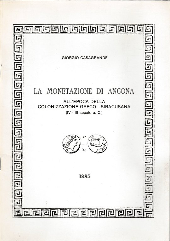 La Monetazione Di Ancona All'epoca Della Colonizzazione Greco-Siracusana 1985