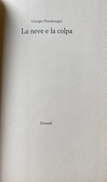 LA NEVE E LA COLPA | Libros antiguos y modernos | Giorgio Pressburger
