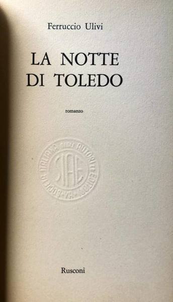 LA NOTTE DI TOLEDO. ROMANZO | Libros antiguos y modernos | Ferruccio Ulivi