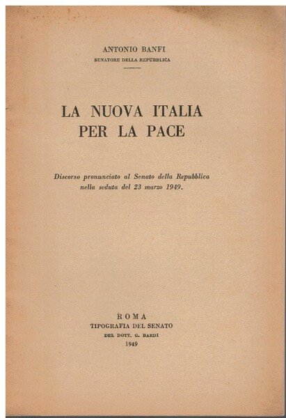 Pubblicazione della tipografia del senato della Repubblica. Discorso del Senatore Antonio Banfi (1886-1957) esponente del PCI, del 23 marzo 1949, Brossura spillata in buone condizioni ingiallita dal fattore tempo. Non comune