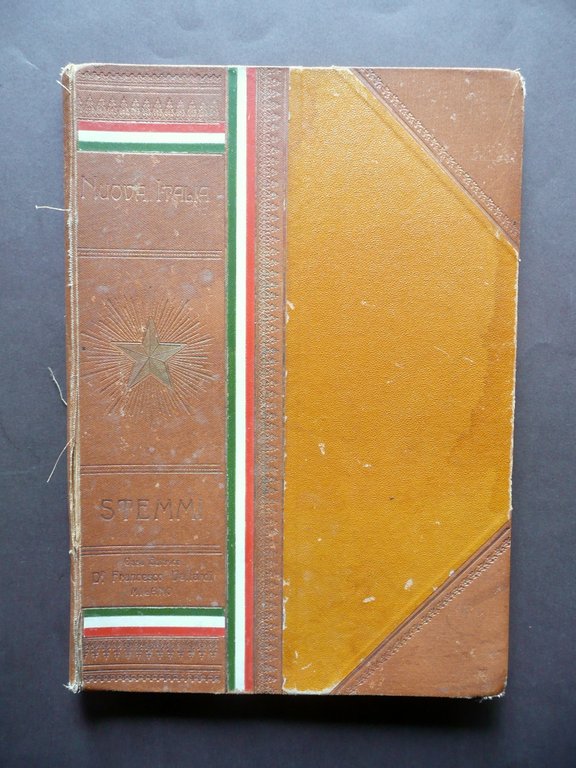 La Nuova Italia - Stemmi Vallardi, Milano, s. d. (primo '900 circa); cm 27,5x19,5; pp. [8], più 25 belle tavole cromolitografiche raffiguranti numerosissimi blasoni, tutte con velina protettiva (vedi foto). legatura in mezza tela ed. (dorso e angoli), con titolo e fregi impressi in oro. Piatto ant. con tricolore. Condizioni di conservazione Esemplare ben conservato con tracce d'uso, coperta con alcune piccole leggere abrasioni e qualche lieve ombra di gora di vecchia umidità, le quali non interessano gli interni; cerniere con strappetti di alcuni cm al rivestimento telato. Interni buoni; qualche pagina e tavola con minimi accenni d'ingiallimento; qualche velina protettiva con traccia / tracce di pieghe (una presenta poche piccole mancanze). SETT139.L13799 N