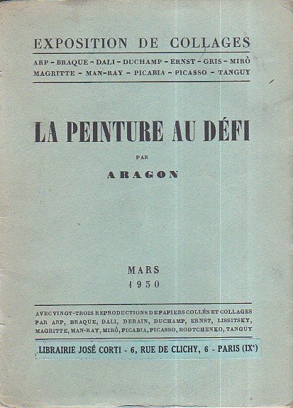 La peinture au défi. Exposition de collages. Arp - Braque - Dali - Duchamp - Ernst - Gris - Mirò - Magritte - Man Ray - Picabia - Picasso - Tanguy. Avec vingt trois reproductions de papiers collés et collages par Arp, Braque, Dali, Derain, Duchamp, Ernst, Lissitsky, Magritte, Man Ray, Mirò, Picabia, Picasso, Rodtchenko, Tanguy | Libros antiguos y modernos | Aragon Louis