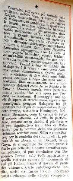 Soggetti: Romanzi storici, Seconda Guerra Mondiale, 1941-1943, Nazismo, Occupazione alleata, Fascismo, Alleati, Americani, Tedeschi, Racconti autobiografici, Storia d'Italia, Classici, Napoli '44, Racconti autobiografici, Vergine, Peste, Generale Cork, Documenti, Kaputt, Galeazzo Ciano, Benito Mussolini, Narrativa contemporanea, Esercito italiano, Corrispondenze di guerra, Reportage, Ironia, Sarcasmo, Successi editoriali, Libri Vintage, Fuori catalogo, Edizioni pregiate, Critica, Manoscritti, Totalitarismo, Viaggio, Antifascismo, Borghesia, Arcitaliano, Benedetti italiani, Ritratti, Novecento, Anni Cinquanta, Anni Quaranta, Anni Trenta, Espressionismo, Politica, Comunismo, Olocausto, Shoah, Fronte orientale, Memorialistica, Malraux, Hemingway, Bernanos, Robert Kem, Orrore, Guerre, Liberazione, Resistenza, Soldati, Ragazzi, Jack Hamilton, Jeanlouis, Jimmy, Europa, Bambini, Henry H. Cumming, Libertà, Letteratura crudele, The Skin, Capri, Cassino, Castel Gandolfo, Pompei, Posillipo, Naples, Neapolitan, Napoletani, Torre del Greco, Trotskyists, Comunismo, Antifascismo, Partigiani, Vesuvio, Eruzione, Vesuvius, Via Appia, Vishinsky, Trotzkisti, Stendhal, Filippino Lippi, Ciociaria, Kolkhoz, Antisemitismo, Ebrei, Leggi razziali, Miseria, Fame, Pederasti, Negri, Neri, Soldati, Dniester, Giaime Pintor, Lipari, Carri armati, Eroi, Popolo napoletano, Principe di Candia, Jeep, Via Chiaia, Vicoli, Pierre Lyautey, Historical novels, World War II, Allied Occupation, Fascism, Allies, Americans, Germans, Autobiographical Tales, History of Italy, Classics, Autobiographical Tales, Virgo, Plague, Documents, Contemporary Fiction, Italian Army, War Correspondences, Irony, Sarcasm, Editorial successes, Out-of-print books, Valuable editions, Criticism, Manuscripts, Totalitarianism, Travel, Anti-fascism, Bourgeoisie, Portraits, Twentieth century, Fifties, Forties, Thirties, Expressionism, Politics, Communism, Holocaust, Eastern front, Memorial, Horror, Wars, Liberation, Resistance, Soldiers, Boys, Europe, Children, Freedom, Cruel Literature, Pompeii, Communism, Anti-Fascism, Partisans, Eruption, Anti-Semitism, Jews, Racial Laws, Misery, Hunger, Pederasts, Blacks, Blacks, Soldiers, Chariots armed, Heroes, Neapolitan people
